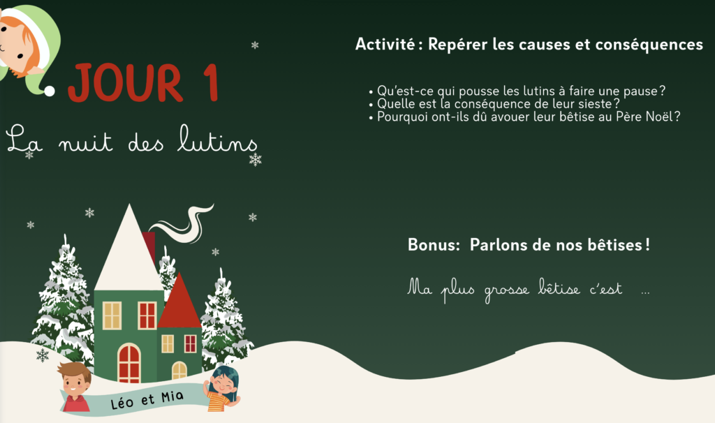 Chaque jour pendant 12 jours, vos élèves suivent un nouveau chapitre de l’histoire… et illustrent le mot-clé du jour.