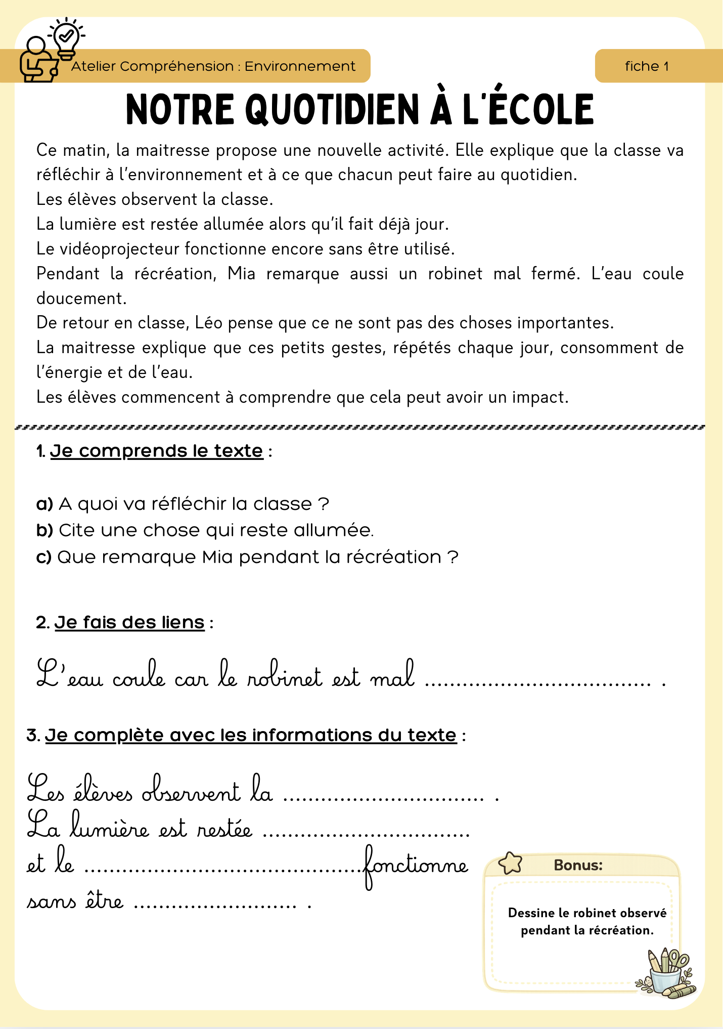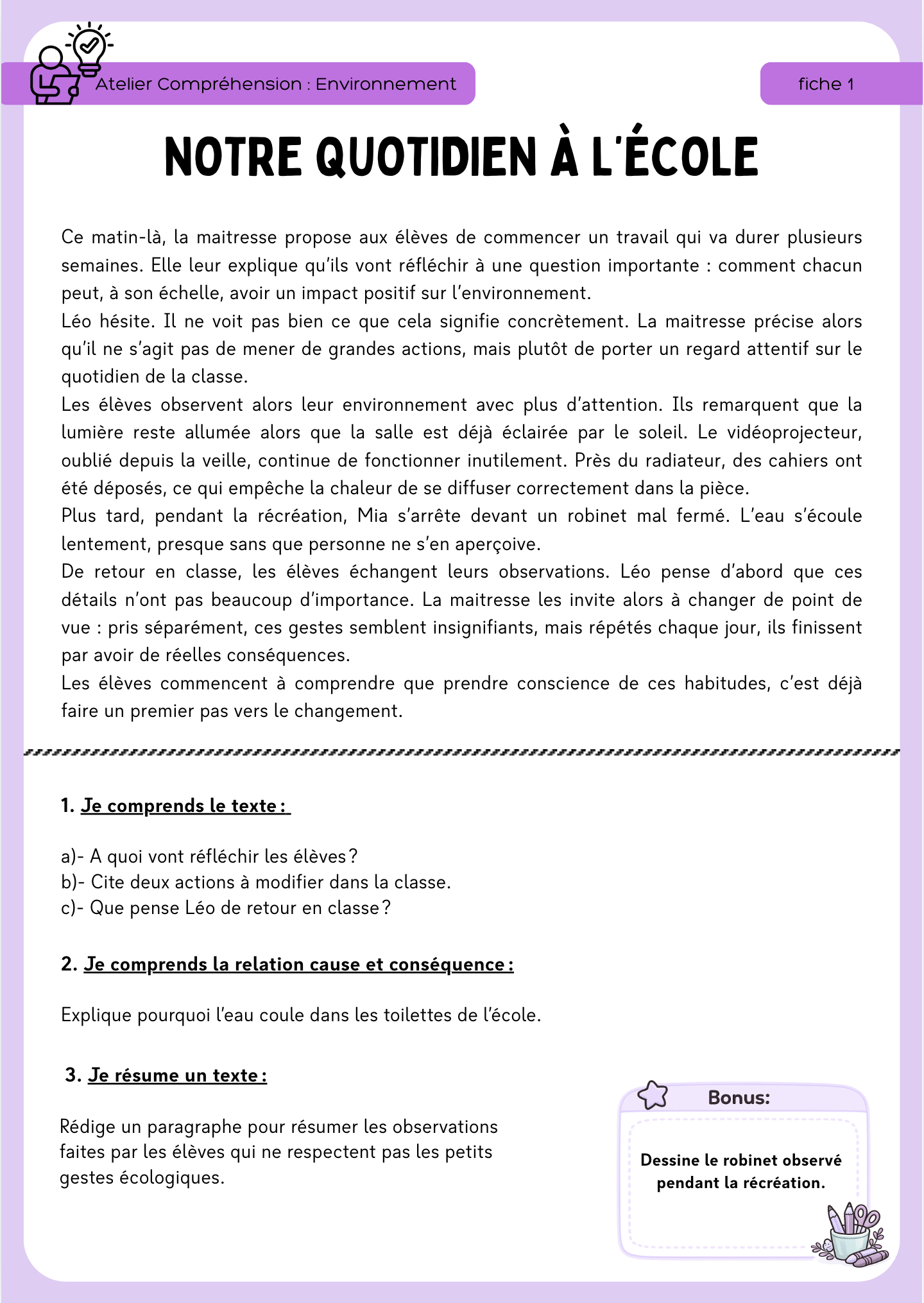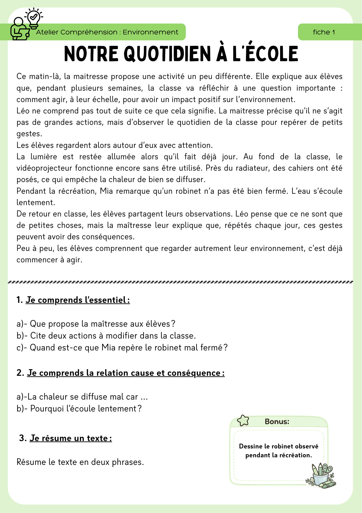 Comme pour mes ateliers de printemps, vous pouvez retrouver le pack complet ici : https://www.ecole-etc.com/product-page/ateliers-de-lecture-l-environnement