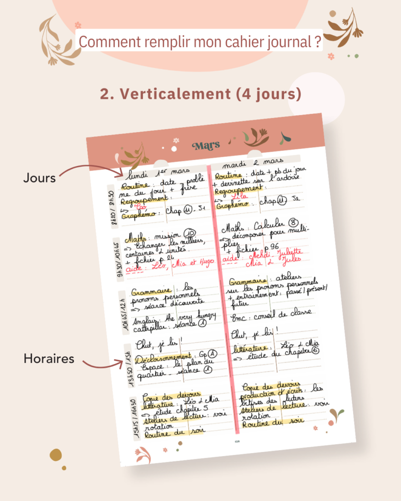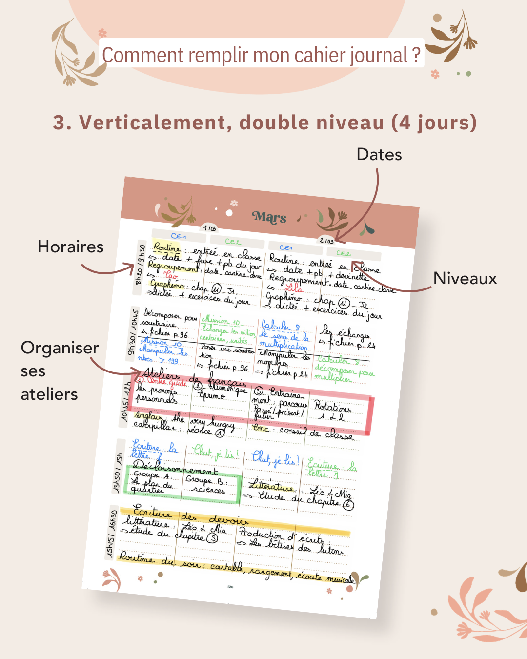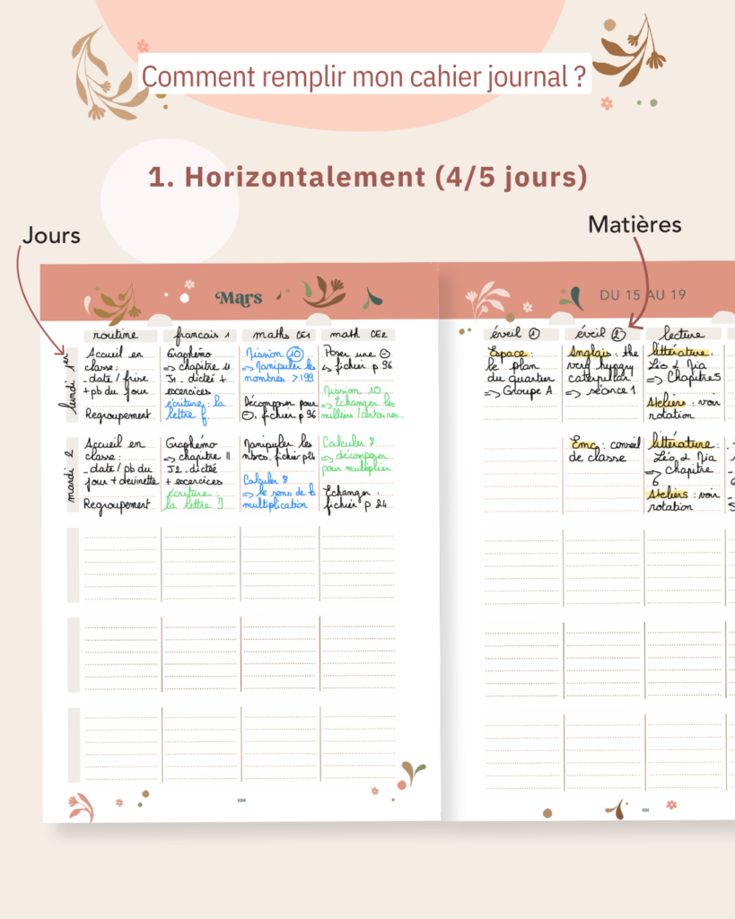 Parce que c’est au planner de s’adapter à votre pratique et non le contraire, voici toutes les possibilités qu’offre le cahier journal.